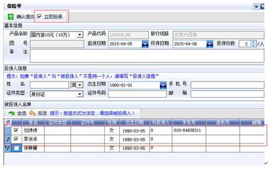 旅程同行旅行社管理软件实现太平洋保险公司的在线投保功能,方便旅行社操作人员在游客报名时可以轻松在线提交保单。